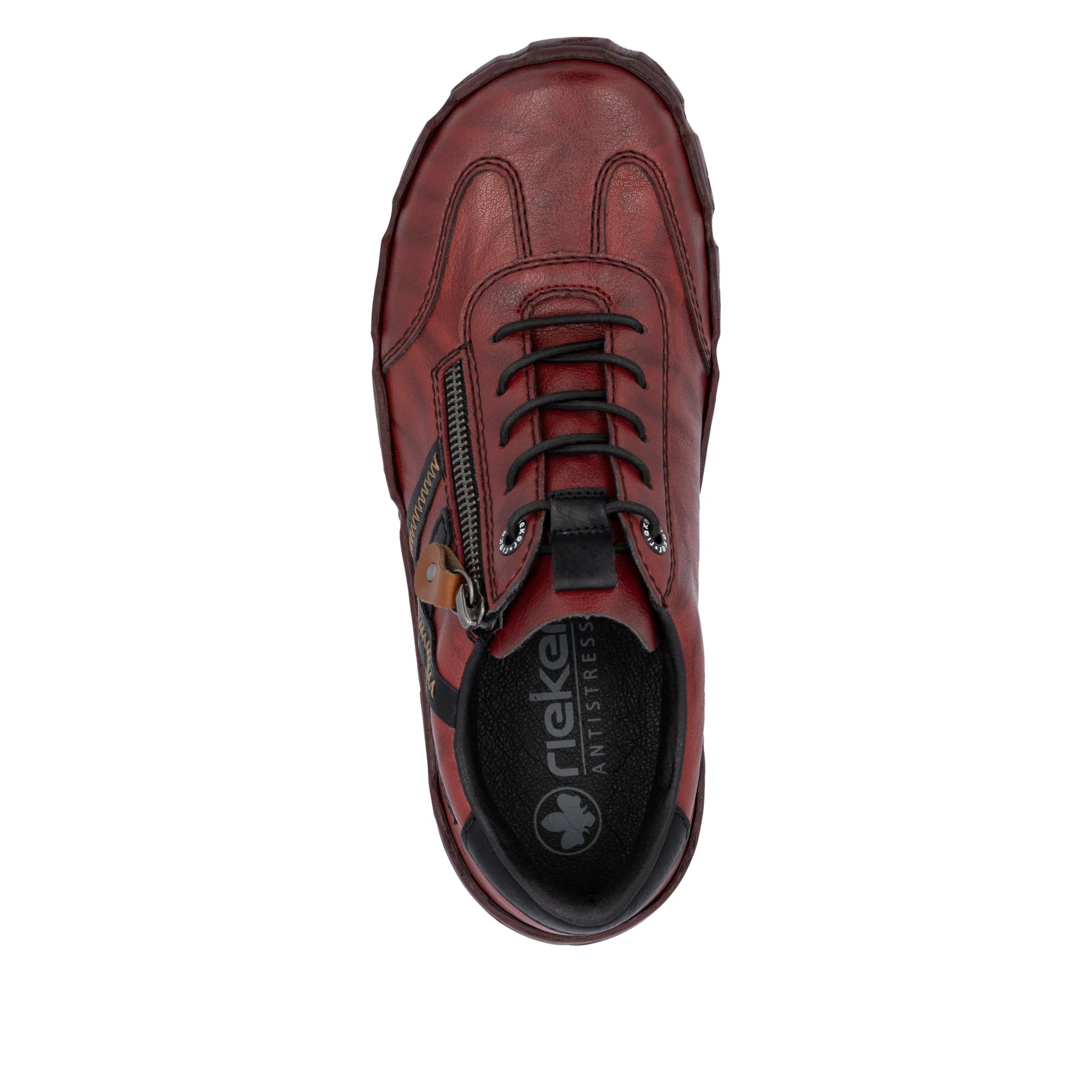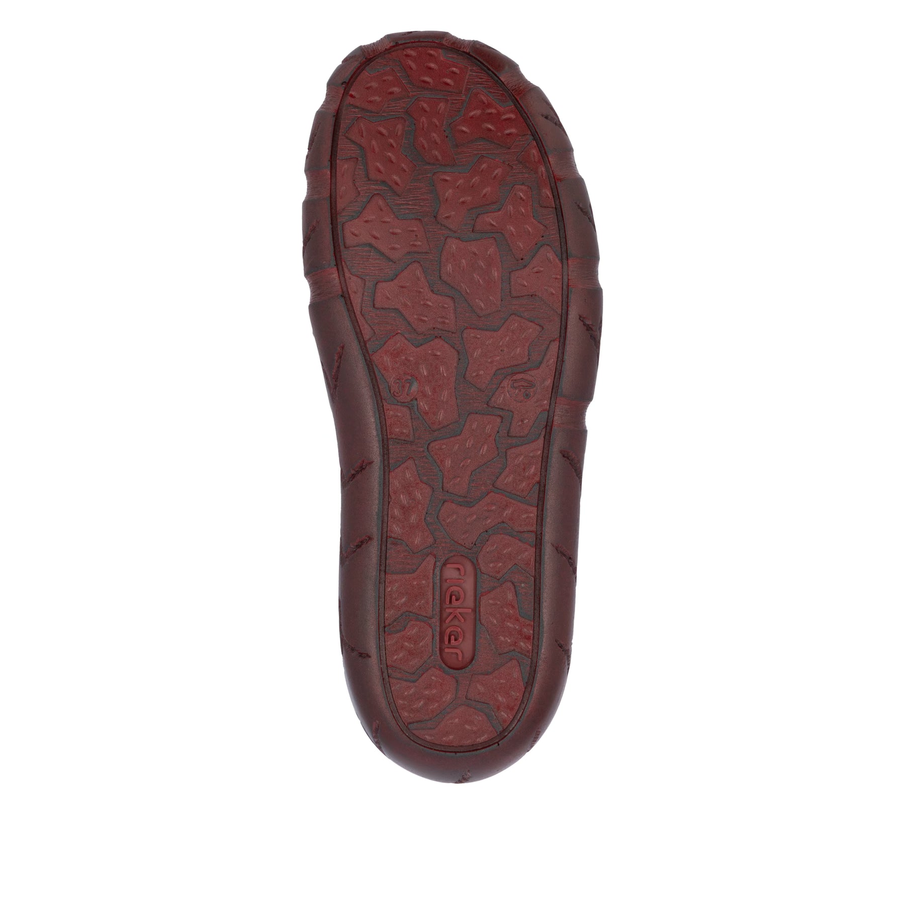 Rieker Ladies shoes L0363-34 Red combination Style und Komfort - best friends forever! Diese dunkelroten Rieker Slipper wurden aufwendig verarbeitet. Der Schuh ist in der Anflechter-Machart gefertigt, was ihn besonders robust und flexibel macht. Ein Reißverschluss ermöglicht einen schnellen und bequemen Einstieg. Mit der schockabsorbierenden und leichten Sohle werden deine Füße bei jedem Schritt verwöhnt und die extra weiche Decksohle sorgt für mehr Tragekomfort. Mehr geht nicht!