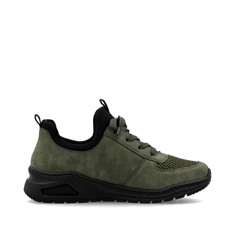 Rieker Ladies shoes M4970-54 Green Stylisch UND komfortabel - hier gibt es kein oder! Diese dunkelgrünen Rieker Slipper überzeugen mit echtem Komfort für die Füße. Dieser Schuh wurde in traditioneller Anflechter-Machart gefertigt, was ihm eine hohe Robustheit und Flexibilität verleiht. Der Gummizug ist besonders beim An- und Ausziehen eine große Erleichterung. Die leichte und schockabsorbierende Sohle mit Keilabsatz verwöhnt die Füße darüber hinaus bei jedem Schritt. Die gepolsterte und herausnehmbare Einlegesohle sorgt für maximalen Komfort. Die Extraweite bietet den Zehen genügend Bewegungsfreiheit. Hineinschlüpfen und wohlfühlen!